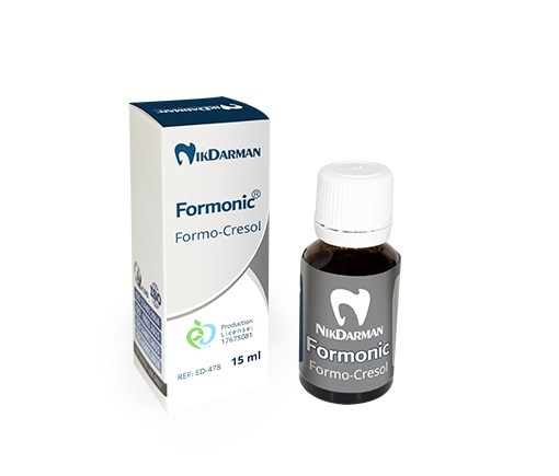 محلول فرموکرزول Formonic نیک درمان در درمان های اندودنتیکس جهت پالپوتومی و ضدعفونی کردن کانال ریشه های پوسیده یا نکروز شده استفاده میشود. فرمالین میکروب کش و تثبیت کننده بوده و تمام بافت داخلی و سخت را از بین می برد که باعث تخلیه راحت تر کانال می شود. کروزل به عنوان ضدعفونی کننده کارآمد عمل کرده و حساسیت ناشی از فرمالین را کاهش می دهد.